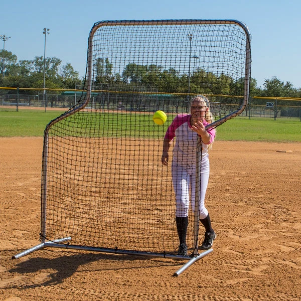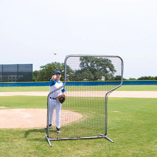 The multi-purpose Champion Sports “Z” Pitching Screen serves as a protective screen for both overhand and underhand throwers on the field. Pitchers and coaches can now safely pitch to batters during practice, without the concern of getting struck by a line-drive. The reversible “Z” shape accommodates both left and right-handed throwers over overhand/underhand tossing. Ideal for baseball and softball batting cage or out on the field. The Z Pitching Screen is constructed of 45-ply mesh PE netting and is 5′ x 7′.