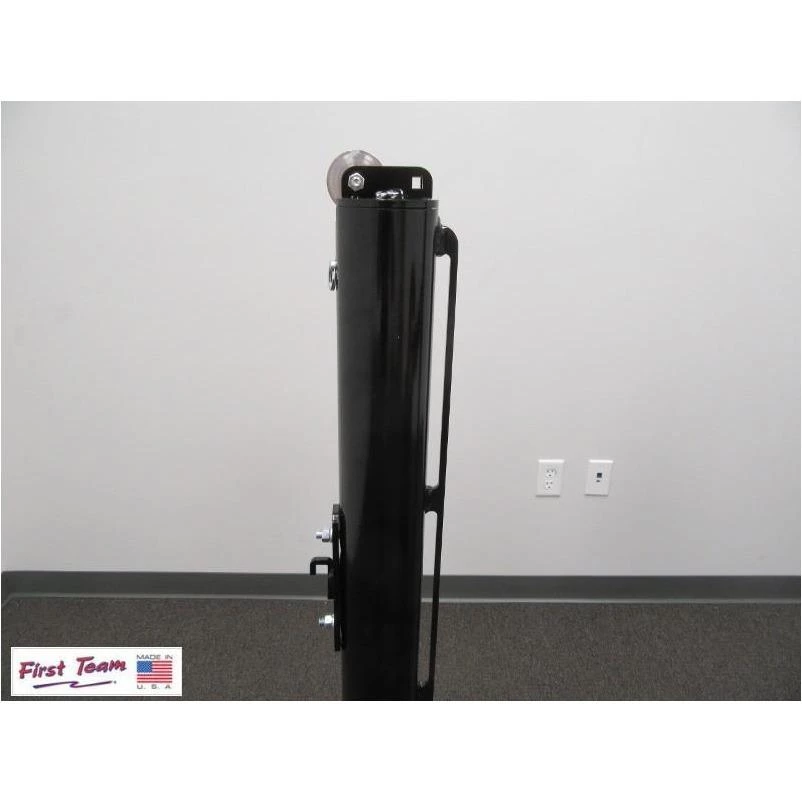 Post assembly telescopes for use as a tennis post on multi-use courts