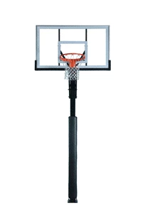 The GC55-LG Basketball System is an in ground basketball hoop designed for realistic basketball action. Its 12 ga. 5″x5″ one piece post is thicker and far superior in strength to competitors thinner 2-piece post design. The GC55-LG includes a convenient anchor bolt mounting system that makes it easy to level or relocate the basketball goal. Enjoy authentic gymnasium play with a professional quality breakaway rim and 5/16″ thick tempered glass backboard that provides true, authentic rebounds. The overhang provides plenty of area for post play. The all-steel actuator allows simple and precise goal adjustments from 7.5 to 10 feet.