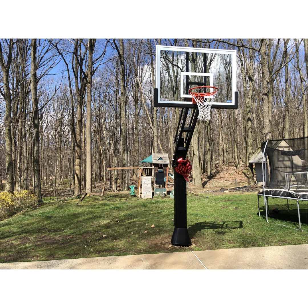 Thick 1/2″ Glass Backboard – Unmatched ball bounce off the backboard. 42″ x 60″ perfect size for full court or half court basketball.