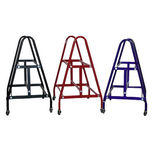 Durable steel frame carrier holds basketballs, volleyballs, and medicine balls.