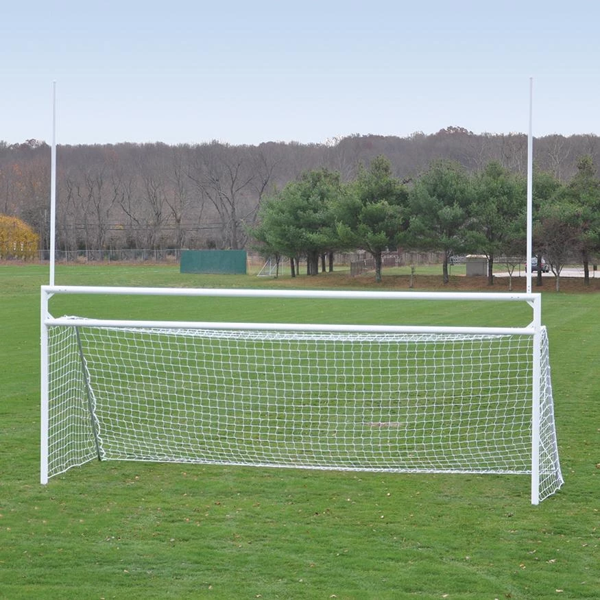 - 4″ round extruded aluminum soccer uprights and crossbars, powder-coated white