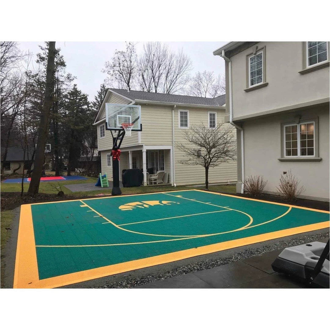 We offer a new way to customize your court with letters/logos for basketball courts. Each logo is roughly 4′ tall and 3′ to 6′ wide but can be customized to your court size as needed.